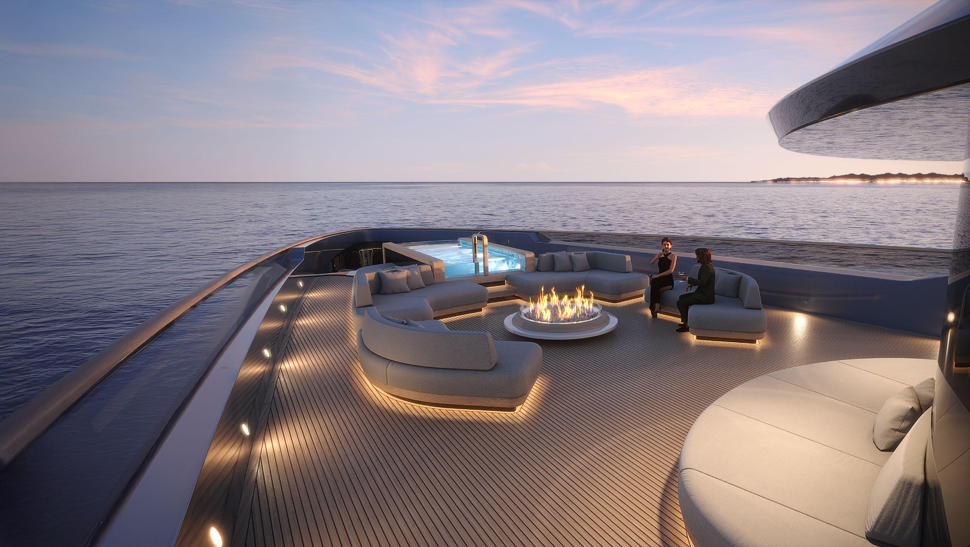 Inside, she blends glass, natural woods, and sculptural contours to create a warm yet precise atmosphere. A central staircase guides the flow between the lounges, the owner’s suite, and the skylounge above. Every detail is attuned to contemporary living and shaped for the visionary owners who will lead the next chapter of the P-Fleet.